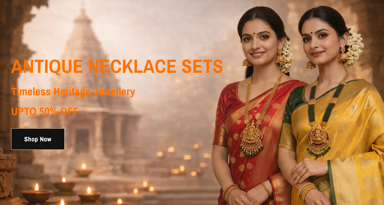 Antique Gold Lakshmi Motif Necklace Set for Women