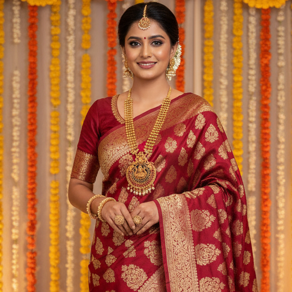 Antique - Maroon Beaded Lakshmi Necklace Set